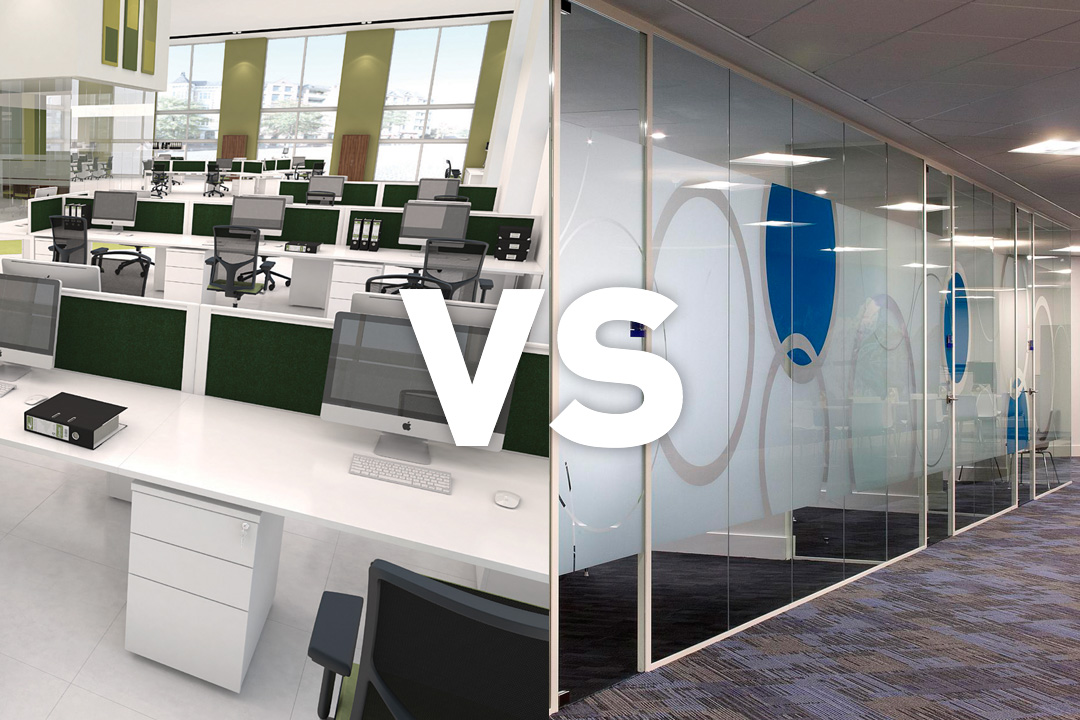 The selection between open and private workspaces determines which environment produces better results for corporate office interior design.